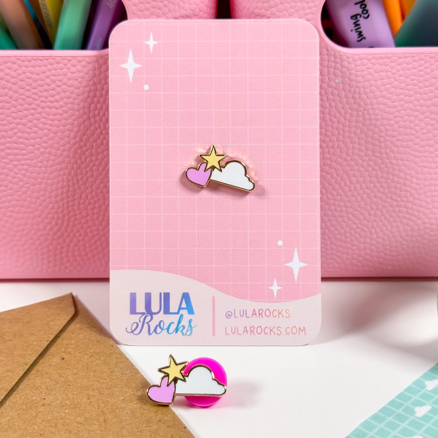 Secured with a pink rubber clutch, it’s ideal for jackets, bags, pin boards or as a sweet little gift. Whether you're building a pastel pin collection or just love celestial vibes, this mini pin brings a burst of gentle joy wherever it lands.