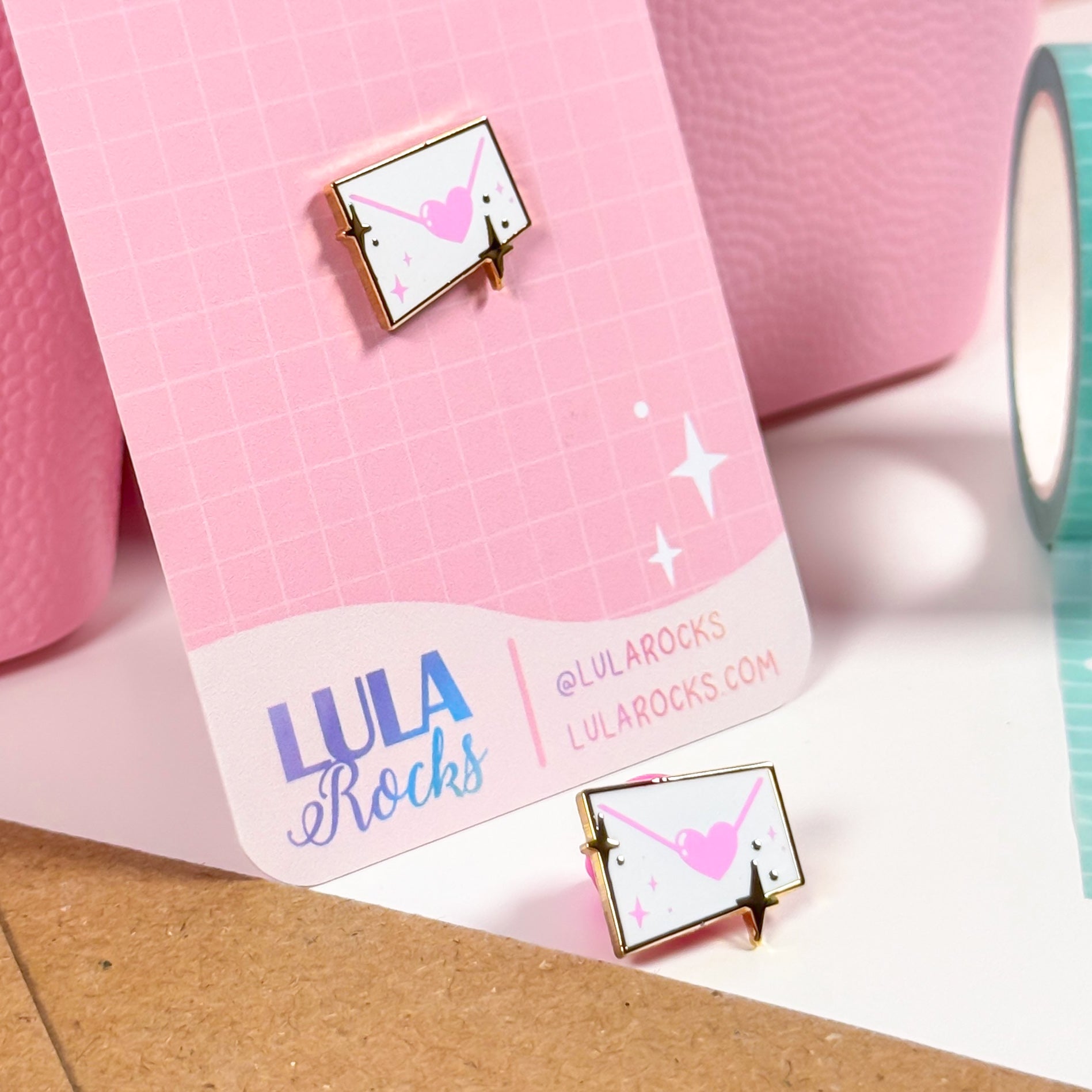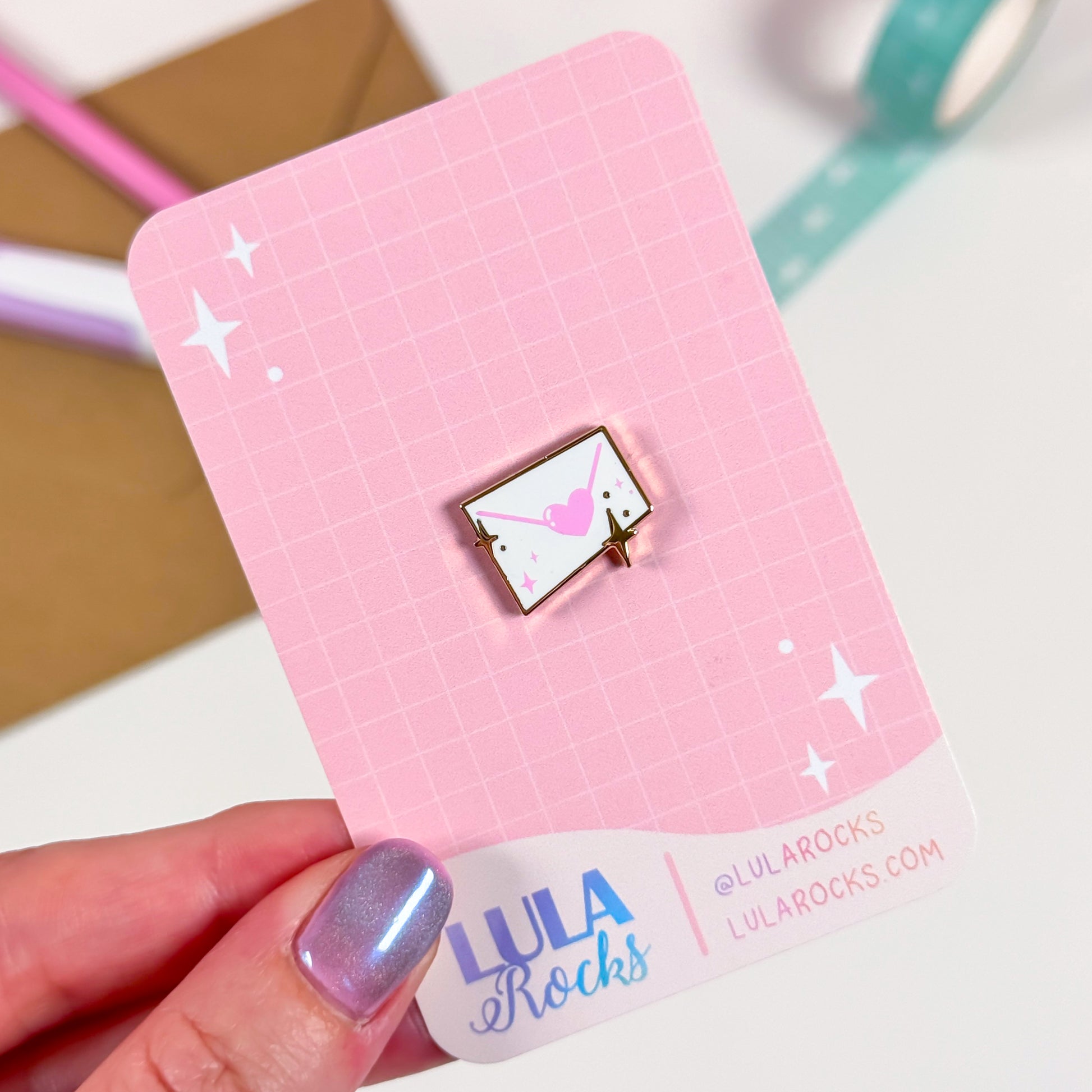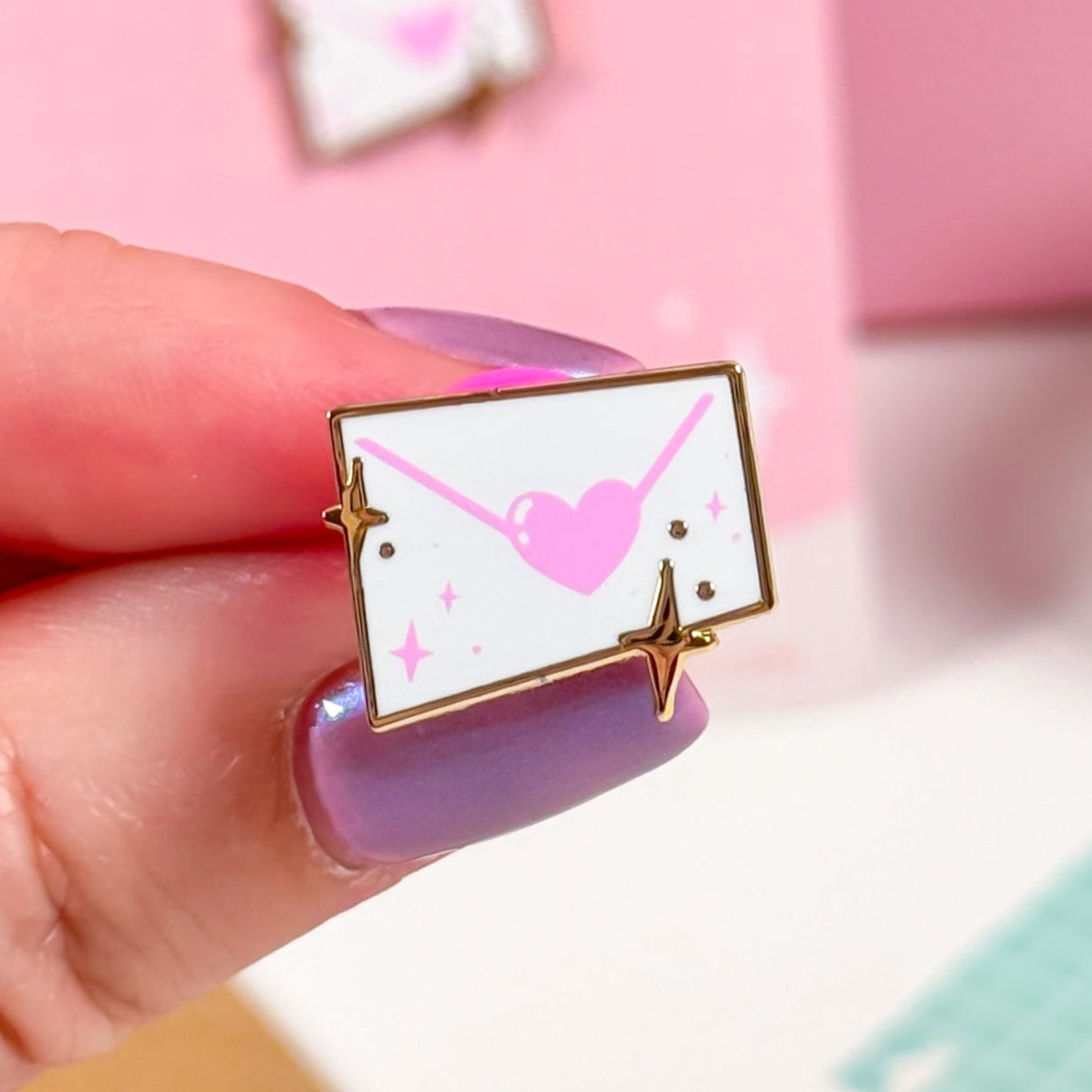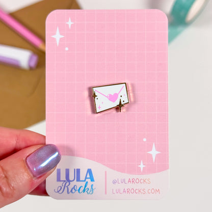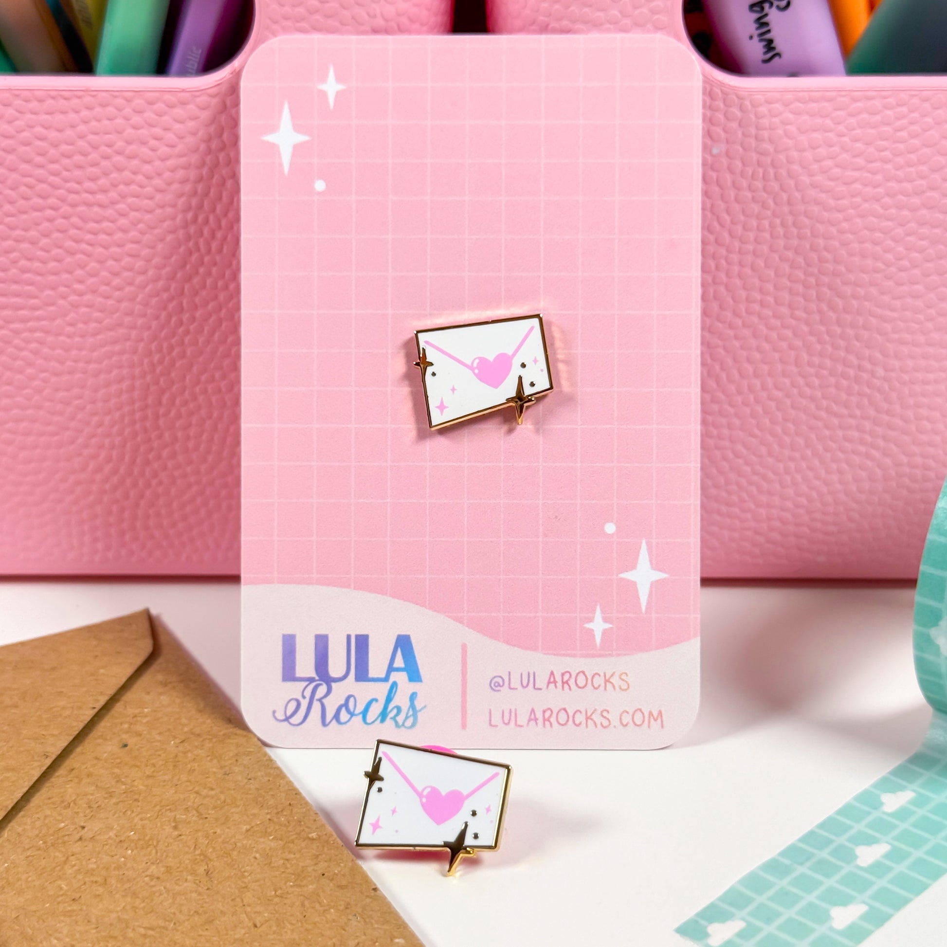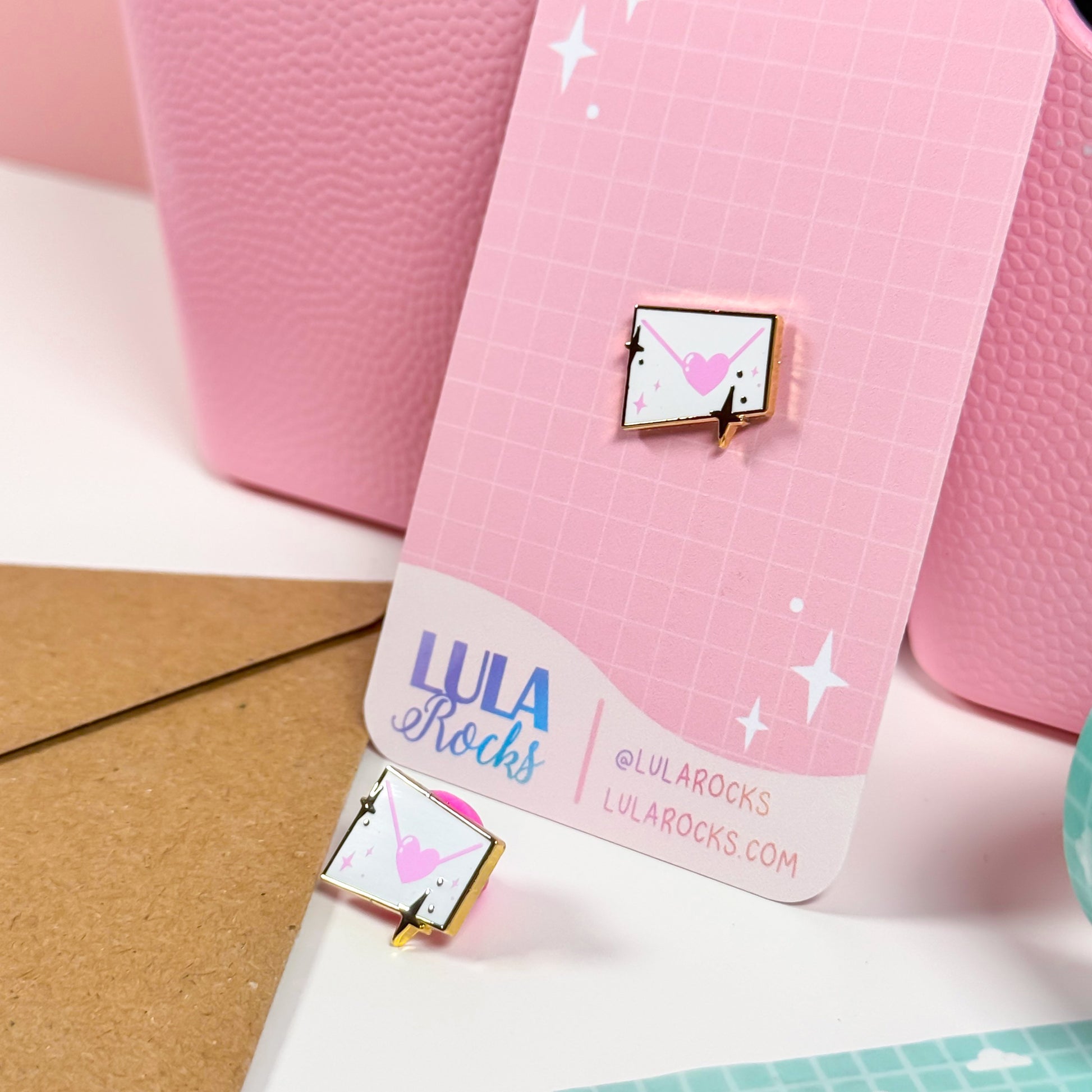 Send a little love with the Envelope mini enamel pin - a sweet design featuring a pastel pink heart and sparkly screen-printed details. At just 17mm wide, this tiny pin is ideal for adding a subtle touch of magic to your bag, jacket, pin board or pencil case.