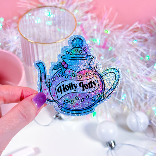 Holly Jolly Brew Potion Holographic Glitter Vinyl Sticker