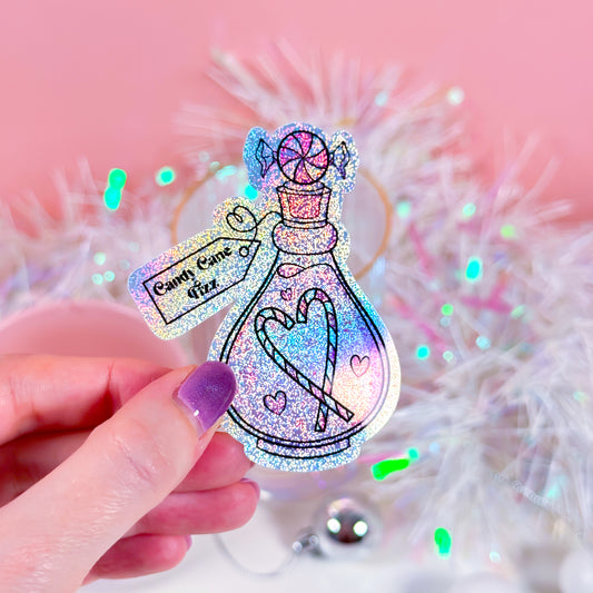 Candy Cane Fizz Potion Holographic Glitter Vinyl Sticker